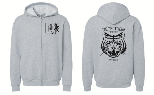 The zip-up hoodie is screen-printed on American Apparel (owned by Gilden Activewear).